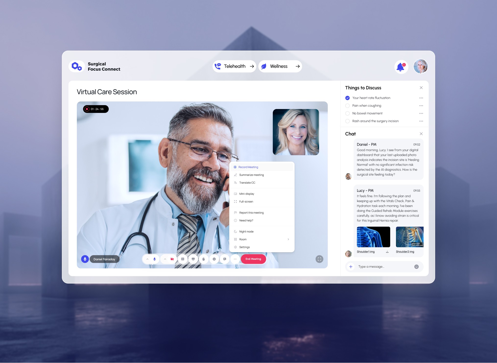 The redesign's core philosophy was to transform Surgical Focus from a reactive telehealth utility into a proactive, AI enabled, human centered recovery platform, bridging hospital-grade data with compassionate care.