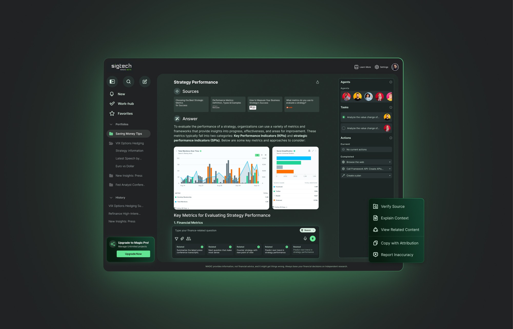 SigTech MAGIC is an AI powered investment copilot platform used by hedge funds and asset managers.