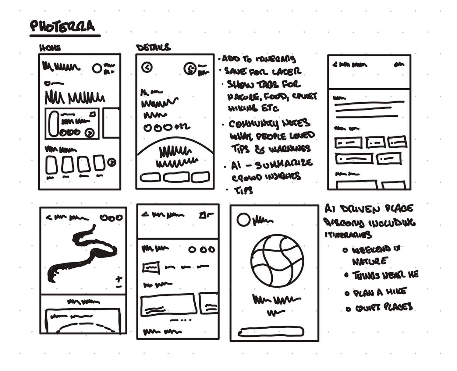 From there, the work moves into UX design, where I defined the information architecture, mapped key flows across maps and itineraries, and validated core paths through low- and mid-fidelity wireframes before investing in polish. Once the structure was solid, I guided UI exploration and prototyping to support clarity, consistency, and future growth. Implementation focused on clear handoff, QA, and AI guardrails to ensure recommendations were explainable and user-controlled. Ongoing feedback and usage signals then informed the next iteration cycle, helping refine discovery, planning efficiency, and personalization over time.